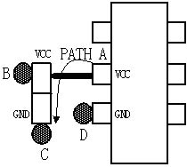 如圖8(b)所示,將過孔B放在電容電源管腳和芯片電源管腳之間,這樣將增加通路A的環(huán)路電感,當(dāng)電容和芯片不是位于同一層時,一般采用這種方式。
