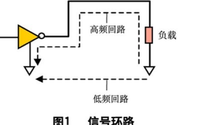 對低頻信號,要使電流流經電阻最小的路徑;對高頻信號,要使高頻電流流經電感最小的路徑,而非電阻最小的路徑(見圖1)。對于差模輻射,EMI輻射強度(E)正比于電流、電流環路的面積以及頻率的平方。(其中I是電流、A是環路面積、f是頻率、r是到環路中心的距離,k為常數。)