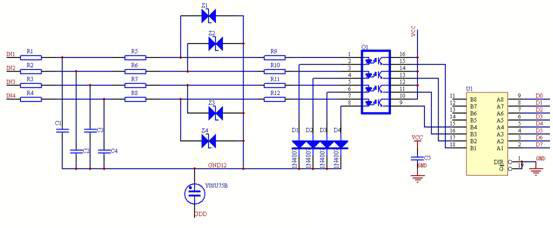 采樣電路的原理圖設(shè)計(jì)參見(jiàn)圖1: