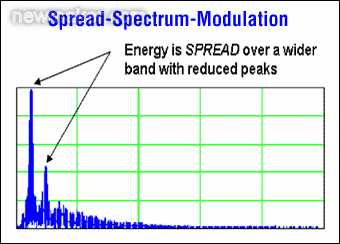 圖3:擴頻后的開關頻率及其諧波分布特性
