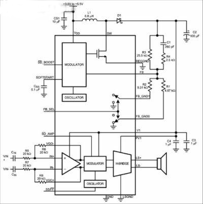 LM48511是一個擴頻調制式D類音頻放大器,內部集成了一個內置式升壓穩壓器,可把電壓提升至7V,從而增強放大器的輸出功率和音頻聲壓級。此外,該升壓穩壓器即使在電池衰減的情況下也可使放大器維持一個固定的輸出水平。