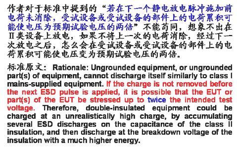 關(guān)于不接地設(shè)備的試驗配置,新版標準與舊版標準的配置是相同的。關(guān)鍵是在單次放電時(無論是空氣的,還是接觸的),試品上的電荷應(yīng)當(dāng)在每次施加靜電放電脈沖之前先行釋放(釋放掉在需要施加靜電放電的金屬點或金屬部位上的電荷)。