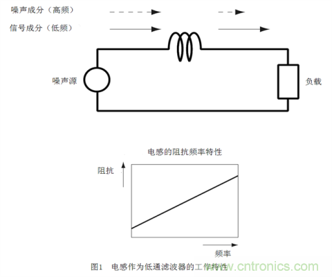 因此,如果將電感串聯(lián)插入噪聲通道,頻率較低的信號(hào)成分將容易通過(guò),頻率較高的噪聲成分將不易通過(guò)。