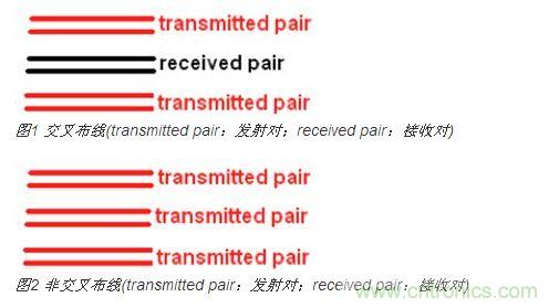 為了盡可能降低緊密耦合線對之間的串擾,微帶線采用收發交叉布線而帶狀線應用收發非交叉布線是一個更好的選擇。