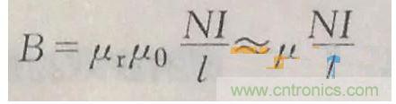 這個是做變壓器最基本的公式根據,但是表示的不對,應該表示為B=(磁導率/磁路)*(NI);
