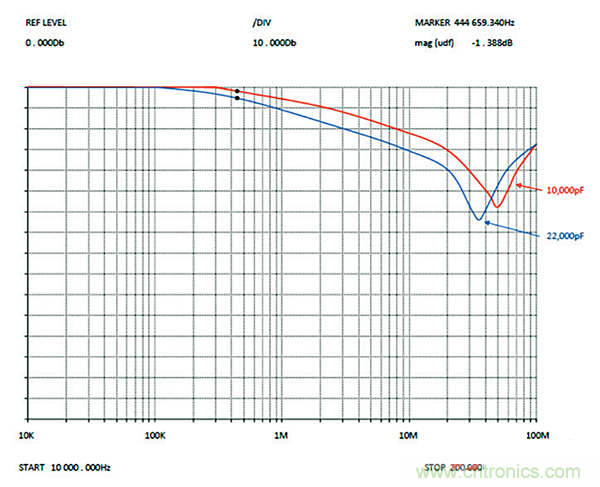 圖8:圖6中具有10000pF電容濾波的系統。