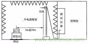 a)電場輻射:也是分臺式與落地式,與傳導發射相同(因為輻射發射結果與產品布置的關系    尤為密切,因此需要嚴格按照標準布置包括產品、輔助設備、所有電纜在內的受試品);