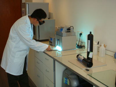 德路上海代表處首席代表 Torsten Uske說到:“我們利用自己的實驗室和各類設備能夠對大部分客戶樣品直接進行現場測試,這樣就不必把樣品發往德國。” Torsten Uske和他的團隊將在實驗室對客戶的應用進行諸如可行性研究。除了在揚聲器和手機領域的粘接外,和顯示器相關的粘接實驗也將在此進行。我們實驗室配備有各類設備,包括溫度測量儀、光強測量儀、固化燈、點膠設備以及涂膠用的絲網印刷模版。