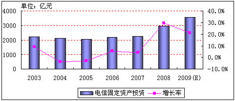 圖1:2003-2009年中國電信固定資產投資情況