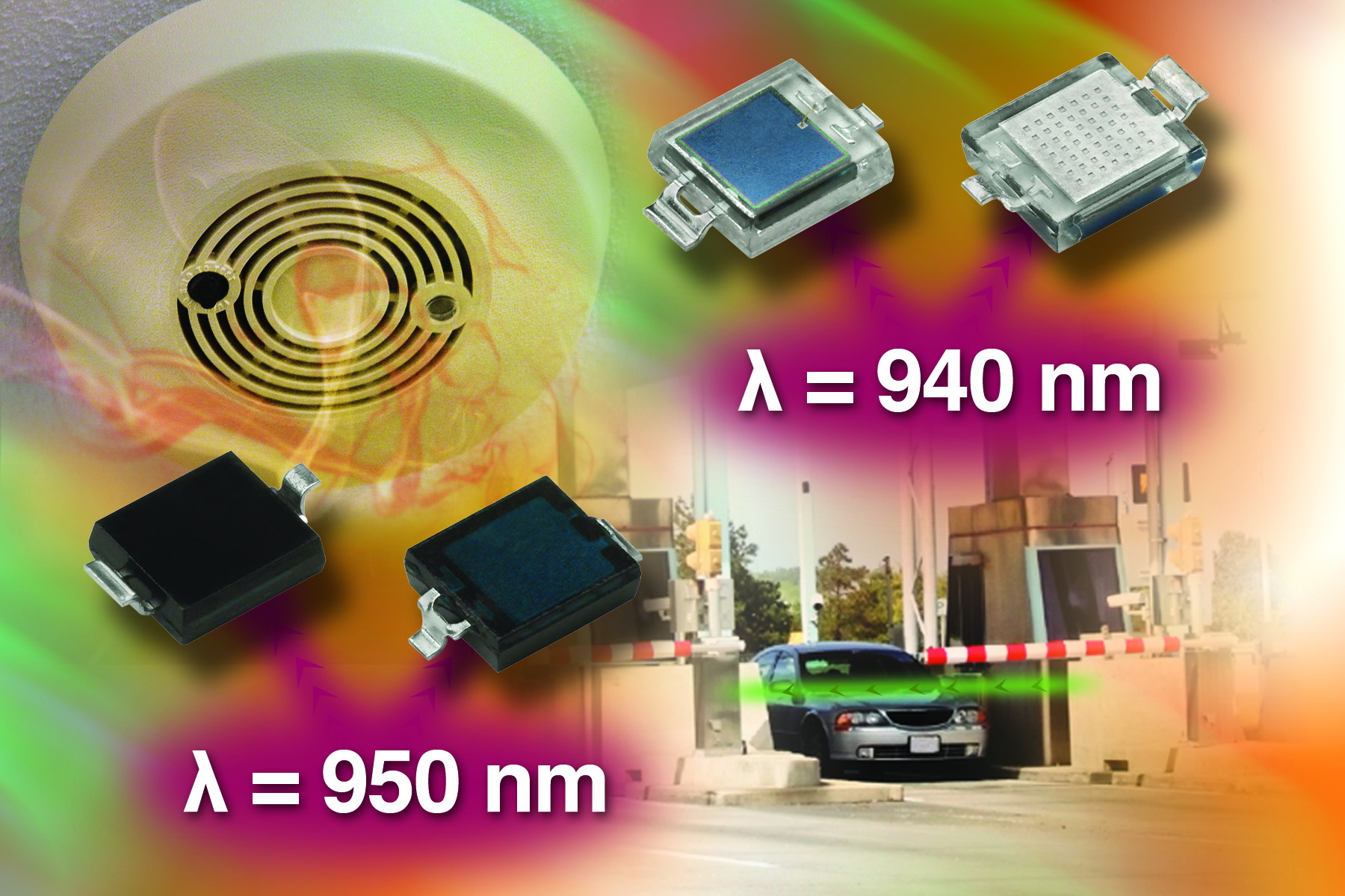 對(duì)于高速光信號(hào)探測(cè),采用透明環(huán)氧樹脂鏡片的VBPW34S、VBPW34SR、VBP104S和VBP104SR的峰值波長(zhǎng)為940nm,是探測(cè)430nm~1100nm光譜范圍內(nèi)信號(hào)的理想之選。