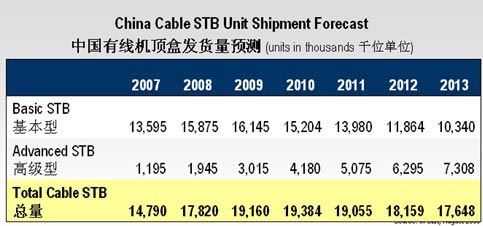 - 高級型的機頂盒發貨量將節節攀升,到2013年的年發貨量將增至730.8萬