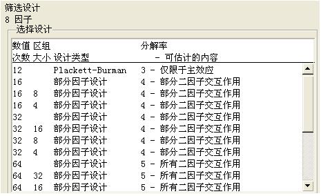 在篩選試驗時不強調因素間的交互作用等影響,但給出了主要的影響因素,這時主要因素的數(shù)量不會太多,可以進一步度量因素的主效應和交互作用。