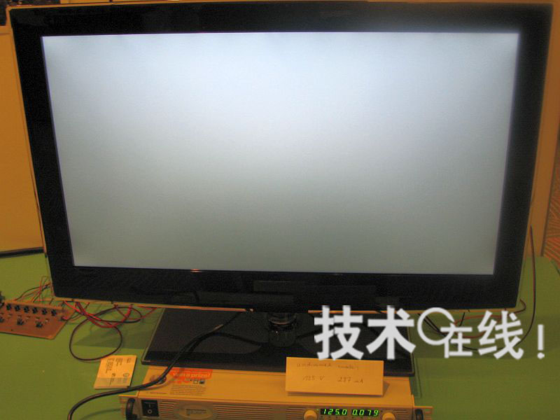 端面照光型LED背照燈的調光工作狀態。 32英寸電視的功耗為9.9W(論文編號DES2-3)。LED的位置共有6處,上下側各兩處,左右和中間各一處。屏幕上部較亮,下部較暗。采用這種背照燈時,僅中央部分(面積10%左右)的圖像較亮