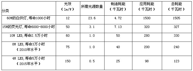 2.表中每個照明燈具提供600流明以上的光輸出,所需光源的數(shù)量、耗能統(tǒng)計均按工作25000小時計算。