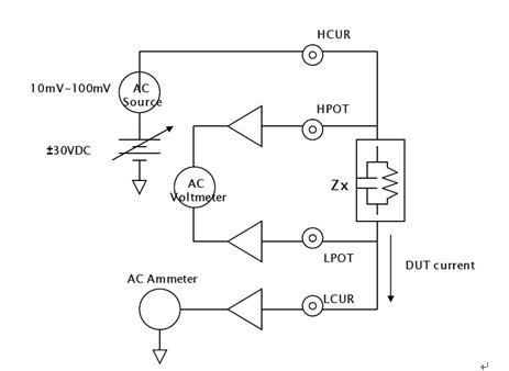 換而言之,這種測試通過加載交流電壓然后測量產生的交流電流、交流電壓和它們之間的阻抗相角,最終測出DUT的交流阻抗。