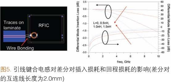 這一點也在圖5(L=0nH的情況下)中表示出來,回程損耗在頻率高達10.0GHz時保持良好,這表明100.0Ω差分對本身具有良好的匹配和低損耗特性。顯然,在高頻RFIC應用中,引線鍵合損耗成為顯著的問題。為了克服這一阻抗失配問題,RFIC和封裝設計師應協同工作,尋找與特定芯片阻抗相匹配的封裝形式。這樣可能出現非標準差分對設計,但是該設計將與引線鍵合芯片非常匹配。