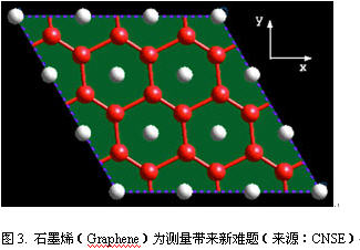 石墨烯是一種穩定材料,也是一種禁帶寬度幾乎為零的半金屬/半導體材料。它具有比硅高得多的載流子遷移率(200000cm2/V),在室溫下有微米級的平均自由程和很長的相干長度。因此,石墨烯是納米電路的理想材料,也是驗證量子效應的理想材料。然而這種材料也非常難以測量(圖3)。石墨稀顯微鏡是測量該新材料的必要手段。關鍵問題之一是單個樣品和多層樣品中石墨稀的層數。TEM和低能電子顯微鏡(LEEM)是確定層數的重要檢測設備,多層切片模擬式確定TEM檢測能力和成像條件的有效方式。LEEM可以檢測層數及樣品的形貌。
