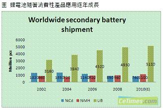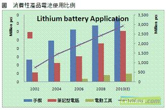 消費(fèi)性產(chǎn)品的發(fā)展趨勢(shì)迅速牽動(dòng)電池產(chǎn)業(yè),根據(jù)集邦科技(TrendForce)旗下研究部門EnergyTrend表示,鋰電池隨著量產(chǎn)數(shù)量增加,價(jià)格與性能也逐漸為消費(fèi)者所接受,包括手機(jī)電池與NB電池,也以鋰電池為使用主流,而伴隨著新材料的革新,動(dòng)力鋰電池也成功在電動(dòng)工具以及兩輪車輛上展露頭角,讓鋰電池突破僅有消費(fèi)性產(chǎn)品的應(yīng)用局限。