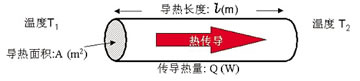 式中:Q為傳導熱量(W);K為導熱系數(W/m℃);A為傳熱面積(m2);L為導熱長度(m)。(T1-T2)為溫度差。
