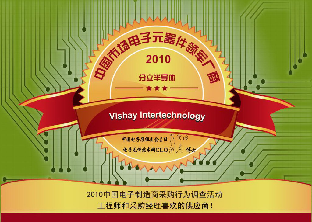 作為調查的一部分,經過審核的調查對象對候選企業的公司形象及品牌知名度、交貨期、產品組合、技術支持、產品質量、技術領先性、供貨能力和產品性價比8個方面的表現進行打分。主辦單位根據總分評出獲獎企業,Vishay因在“分立半導體”類獲得的高分而獲獎。