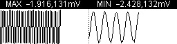 圖5是使用直方圖觀測被本底噪聲淹沒的信號的實例。圖左側是電路本底噪聲的時域波形(下方,垂直方向是時間軸方向。下同。)及其直方圖,該噪聲基本符合高斯分布,認為是白噪聲。圖右側是電路加入一個3μVpp左右的脈沖方波后的測試結果。對比時域波形,右側信號波形跟左側白噪聲波形很相像,電壓平均值也相接近,不能直觀地判定兩種波形的區別。但是對比兩者的直方圖可以明顯發現兩種信號的區別,而且通過右側直方圖可以推斷加入的信號有低電平分量,且該低電平分量出現概率不大,近似于占空比很小的負脈沖。