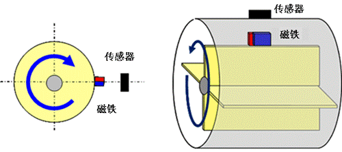 通過讓傳感器靠近和遠離磁鐵來控制電路的方法,較為普遍的就是使用在蓋或門的開關部分,比較容易想象。若在磁鐵上安裝齒輪或羽毛,還能夠作為液體或氣體的流量計使用(如圖6)。另外還可以用來檢測可脫卸的零件在使用時的安裝位置是否正確。