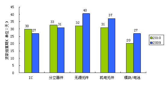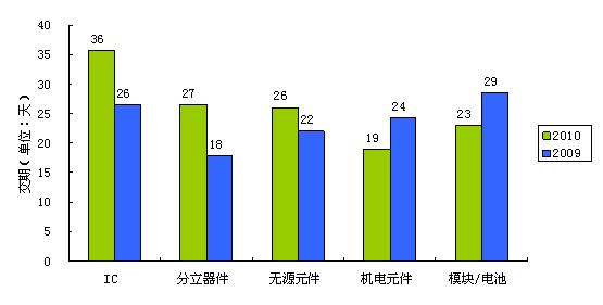 本次調(diào)查的結(jié)果印證了2010年電子行業(yè)所面臨的“缺貨”困境——2010年電子系統(tǒng)制造商與設(shè)計(jì)公司面臨的最普遍的采購(gòu)風(fēng)險(xiǎn)是無(wú)法供貨,43.6%的公司面臨著供應(yīng)商無(wú)法供貨的困擾。與2009年的調(diào)查做對(duì)比,2010年IC、分立器件、無(wú)源元件、機(jī)電元件、模塊/電池五大類物料價(jià)格有不同幅度增長(zhǎng),其中IC與分立器件漲幅最大,機(jī)電元件、模塊/電池漲幅最小;交貨期方面,IC、分立器件、無(wú)源元件交貨期都有所延長(zhǎng),而機(jī)電元件、模塊/電池交貨期分別縮短了5天和6天;貨款結(jié)算期方面,IC、分立器件貨款結(jié)算期均有所延長(zhǎng),無(wú)源元件、機(jī)電元件、模塊/電池的貨款結(jié)算期都縮短了。