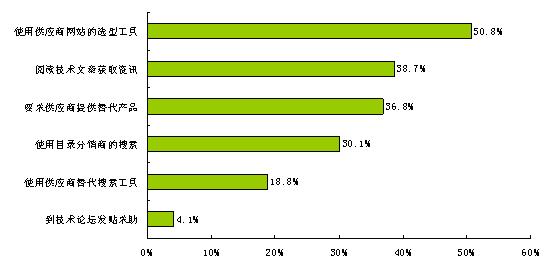 通過(guò)對(duì)替代方式的調(diào)查發(fā)現(xiàn),不同品牌物料之間的替換成為2010年使用替代物料的最主要方式,而2009年的調(diào)查結(jié)果中廠商新老產(chǎn)品替換占據(jù)主流。替代方式側(cè)重點(diǎn)的變化也反映了供應(yīng)鏈中物料品牌替換比較活躍,這為新的品牌供應(yīng)商切入市場(chǎng)提供了機(jī)會(huì)。那么工程師如何獲得品牌替代信息呢?通過(guò)調(diào)查發(fā)現(xiàn),使用在線工具是尋找物料品牌替代信息成為新寵。在線工具包括供應(yīng)商網(wǎng)站的選型工具、目錄分銷商的搜索工具、供應(yīng)商替代搜索工具。此外,技術(shù)文章也是影響工程師選擇的重要方式,而技術(shù)文章恰恰是國(guó)內(nèi)元器件供應(yīng)商的短板。