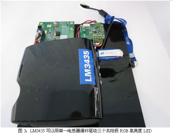 針對便攜式投影儀的單電感RGB循環模式2A LED驅動器LM3435也是美國國家半導體在本屆廣州照明展上重點推出的產品。LM3435可以用單一電感器循環驅動三個共陽極RGB高亮度LED,這是LM3435最大的特點。