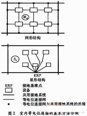 網形和星形等電位連接的基本方法如圖2所示。