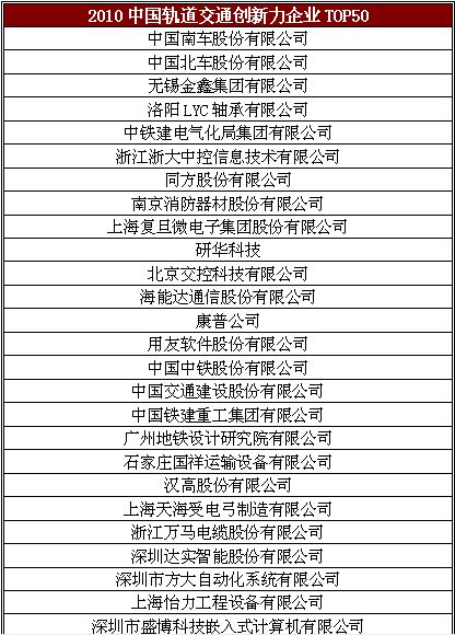 2011年度軌道交通創新力企業TOP50評價活動隆重拉開帷幕