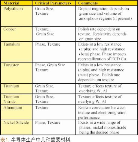 將XRD設(shè)備用作線上檢測的工具面臨著各種各樣的挑戰(zhàn)。其中主要的問題是如何選擇合適的參數(shù)作追蹤。在很多情況之下,這種選擇具有針對性。例如,檢測鋁淀積的設(shè)備主要關(guān)注其織構(gòu),因為它是鋁互連線電致遷移表現(xiàn)的一個主要參數(shù)。但是,對于銅互連,問題變得更加復(fù)雜,織構(gòu)和晶粒尺寸都需要進(jìn)行檢測。為了正確的選擇參數(shù),我們需要事先了解材料的特性,或者對幾個參數(shù)進(jìn)行若干個月的檢測,并將它們的變化與其他量測設(shè)備、良率、可靠性的數(shù)據(jù)進(jìn)行比較,最終做出結(jié)論。