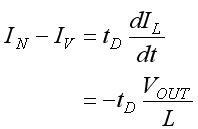 (3)式中的t是時間,而VOUT是電源轉換器(如圖1所示)的輸出電壓。當L減小時,便會相應減少。由于tD不會受ILS、L和VOUT影響,并且VOUT也不受L影響,所以IN會隨著L而下降。這種關系可用下式表示: