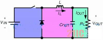 電流限制是開關式電源轉換器的一個重要保護功能,它可以在電流限制模式下限制可用的輸出電流,以防止出現系統故障。峰值電流限制是目前業內普遍采用的電流限制方法。每當電感的電流IL超出閾值IV時,電源轉換器的開關(如圖1所示)便會關斷,以制止電流從輸入電壓源VIN注入,直至IL小于IV時,開關才會重新開通。由于輸出電流IOUT總是等于IL的平均值(在工作期間IL呈線型紋波),故在電流限制模式下的IOUT(CL,DES) 為: