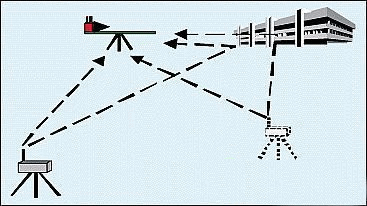 HAAT系統可用來評估在分集組合和自適應波束形成試驗中各種天線配置的性能(典型的應用如圖1)。圖2給出了一個采用HAAT系統的典型試驗場景。接收器將來自兩個或更多接收信道的信號下變頻到基帶。這些信號被記錄在數字錄音帶上,以便利用適當的算法進行離線處理。接收器在2.8米長的軌道上以模仿人行走的恒定速度移動。一個小型手持式無線電裝置支撐著兩個天線,天線的間隔和方向是可變的。該系統具有如下特性:2.05GHz CW信號;兩個發射器;一個接收器(兩個信道,可擴展至4個);2.8米線性軌道可連續收集數據,并離線處理;高度便攜式電池供電系統;手持接收器的真實工作環境。