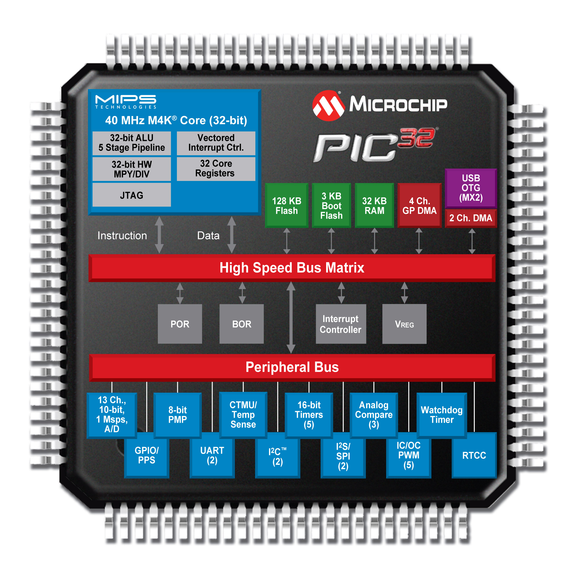 PIC32 “MX1”/“MX2”:Microchip擴展32位PIC32單片機系列