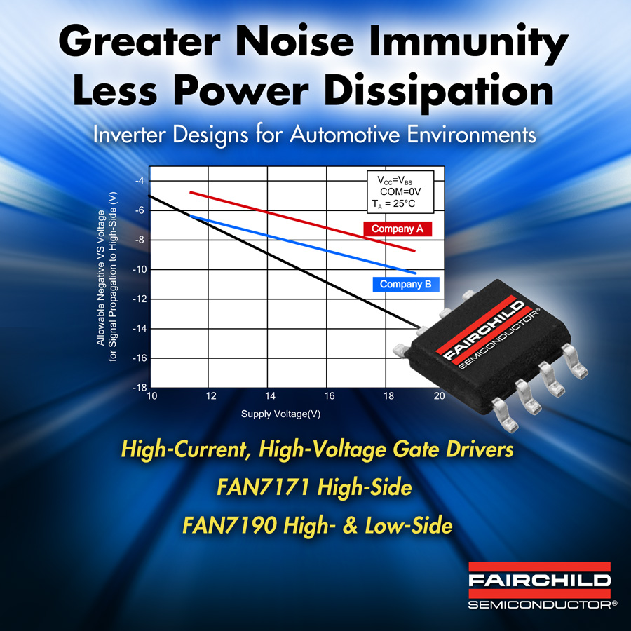 FAN7171和FAN7190 HVIC器件提供了集成式逆變器解決方案,在嚴苛的汽車應用中提供更高效率、更大驅動電流和更高穩健性。
