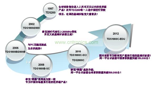 繼全球突破50萬臺之后,近日泰克公司又宣布,其全球最流行的基礎示波器TDS1000/2000系列(包含TDS200系列數字存儲示波器)在中國的累計出貨量刷新15萬臺記錄,成為保有量最高的示波器產品系列,也標志著數字示波器在中國得到全面普及!