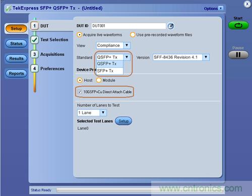 SFP+QSFP+Tx解決方案利用簡(jiǎn)單的菜單驅(qū)動(dòng)式測(cè)量設(shè)置以及提供一鍵式一致性測(cè)試,加上自動(dòng)的“通過/失敗”報(bào)告生成,幫助提高測(cè)試測(cè)量效率。除標(biāo)準(zhǔn)的一致性要求外,該解決方案還支持設(shè)計(jì)鑒定,并具有對(duì)測(cè)試配置(如分析窗口和其他參數(shù))的靈活控制。如對(duì)設(shè)計(jì)的一致性測(cè)試失敗,使用者可利用DPOJET(抖動(dòng)和定時(shí)分析)設(shè)置文件來減少調(diào)試時(shí)間。