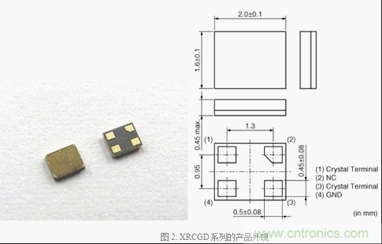 XRCGD系列的產品外觀如圖2所示。產品規格如表1所示。采用了2.0×1.6mm的外形尺寸,相對于目前民生市場上一般的3225尺寸(3.2×2.5mm)達到了削減60%的小型化。對應頻率通過無線通信在主要的各種頻率上疊加,可對應面向智能手機等廣泛采用高智能CPU的頻率。頻率精度將初期偏差、溫度特性和長期變化計算在內全部的頻率精度在±20ppm以下。主要預計應用于Wi-Fi、Bluetooth® 等無線通信以外、智能手機和可穿戴設備等高智能CPU中。