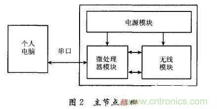 主 控節點結構如圖2所示。它通過串口與PC主機交互數據,通過無線模塊與艙內子節點通信,同時管理和協調艙內各節點的工作時序和同步。其中,微處理器用TI 公司超低功耗的MSP430F149,無線通信模塊選用Chipcon公司的2.4GHz頻段射頻低功耗接口芯片CC2420,電源模塊采用DC/DC電 源變換模式。MSP430微控制器在16bitRISC核的基礎上集成了RAM和閃存,同時集成了8路A/D轉換模塊、傳輸速度可編程的串口模塊和一個靈 活的時鐘子系統,支持多種低功耗操作模式。CC2420芯片與IEEE802.15.4協議兼容,最大數據數率250Kbit/s,可編程控制輸出功率, 并支持錯誤校正和加密。MSP430可通過SPI接口和中斷數字I/O線對CC2420進行控制,如圖3所示。