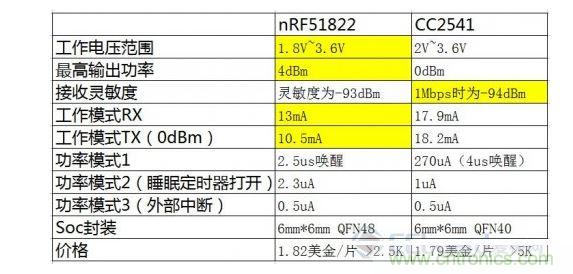 簡單的對比中我們可以發現,這顆Nordic N51822 Soc功耗絕不是蓋的,相比Ti的 CC2541將近低了30%~40%(有點不可思議)。