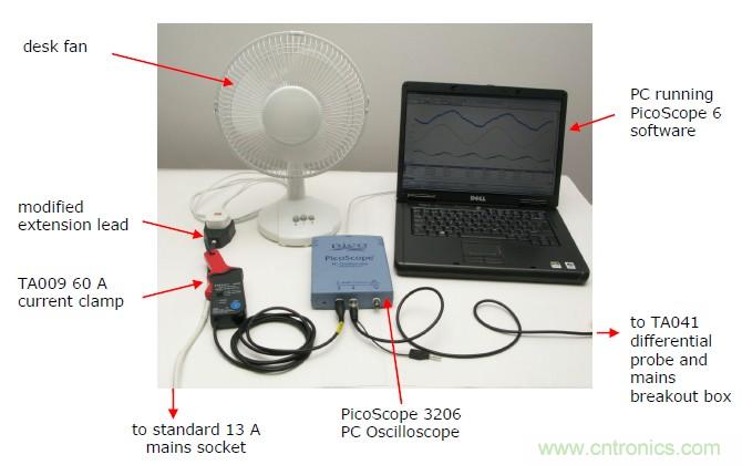 本實驗之所以臺扇為例,是因為其內置一個小的交流電動機,能夠產生一個典型的電流波形和低的功率因子。