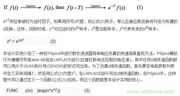 舉例來(lái)說(shuō),如果用分子或分母形式將z(-10)寫(xiě)下來(lái),PSpice將用e-10sT替代z(-10) (s是LAPLACE部分使用的拉普拉斯變量)。公式(3)可以放在包含文件中,或更方便地放在新原理圖模板FUNCTIONS中。