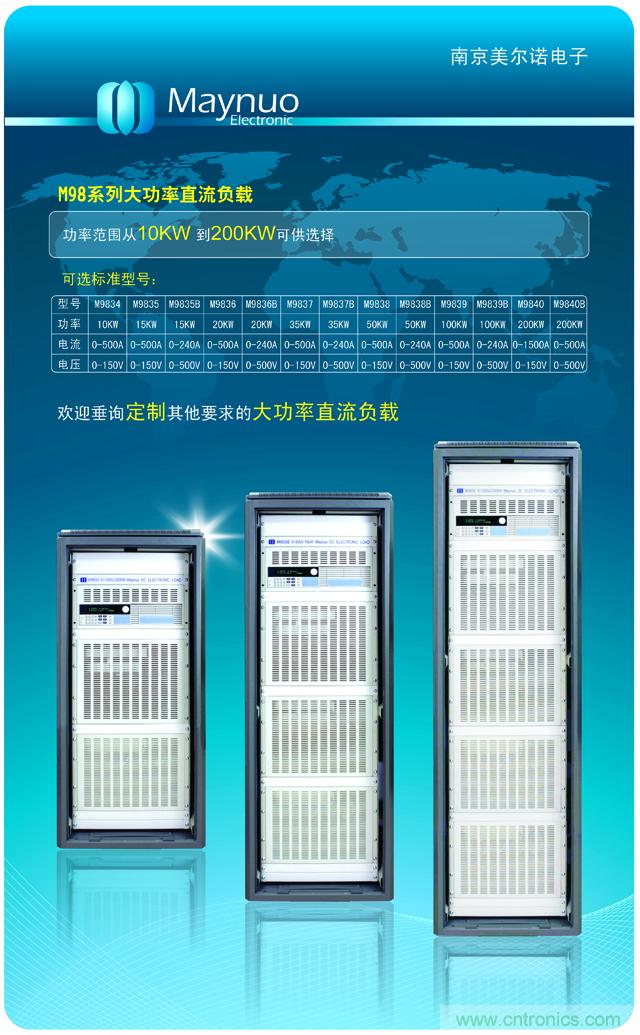 【導(dǎo)讀】近日,南京美爾諾推出多種型號(hào)的M98系列大功率直流負(fù)載,可提供選擇的功率范圍是10KW到200KW。如有其他要求,歡迎垂詢。快來看看吧。