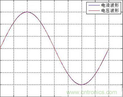 假設被測電壓和電流為純正弦曲線,如圖1所示。被測電壓與電流之間的相位差為零,兩波形完全重合,根據功率因數的定義,此時功率因數的測量結果等于1。