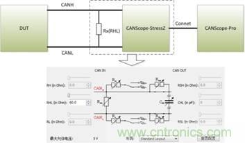 1. 如圖1所示,進行測試連接。測試使用CANScope-Pro的眼圖功能,進行統計以達到高的測試精度。DUT上電后,要一直發送CAN報文, CANScope不勾選總線應答,其黑色表筆(地)要和DUT的CAN收發器共地。
