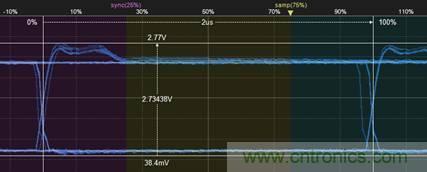 在以往的測試中,我們只能通過示波器測量1bit的差分電平顯性位的末端幅值,然后在測量前半段(50%)差分電平最大值,兩者相除,如果在81%~150%則通過;
