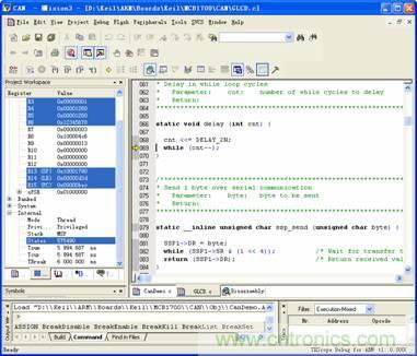在Keil MDK環(huán)境下,進入仿真狀態(tài)之后,打開【Debug】菜單下的【Breakpoints】選項。在Breakpoints窗口即可定義變量操作斷點。