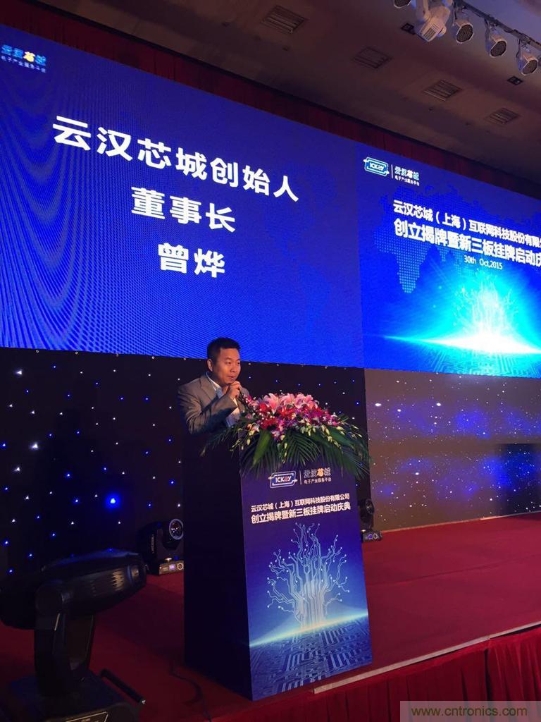 啟動(dòng)儀式上,云漢芯城創(chuàng)始人、董事長曾燁介紹了公司在傳統(tǒng)電子產(chǎn)業(yè)耕耘多年后毅然轉(zhuǎn)戰(zhàn)互聯(lián)網(wǎng)的蛻變歷程,并宣布云漢芯城已順利完成股改,成功啟動(dòng)新三板掛牌。上海云漢電子有限公司正式更名為云漢芯城(上海)互聯(lián)網(wǎng)科技股份有限公司(以下簡稱“云漢芯城”)。